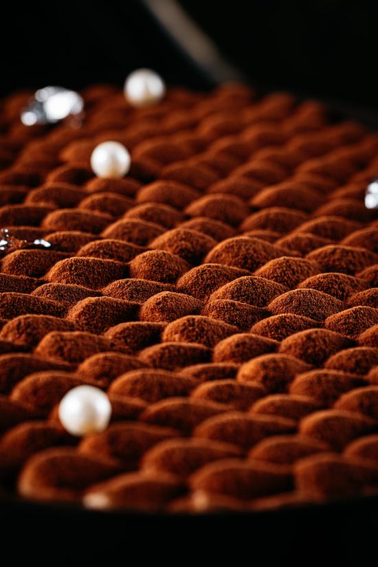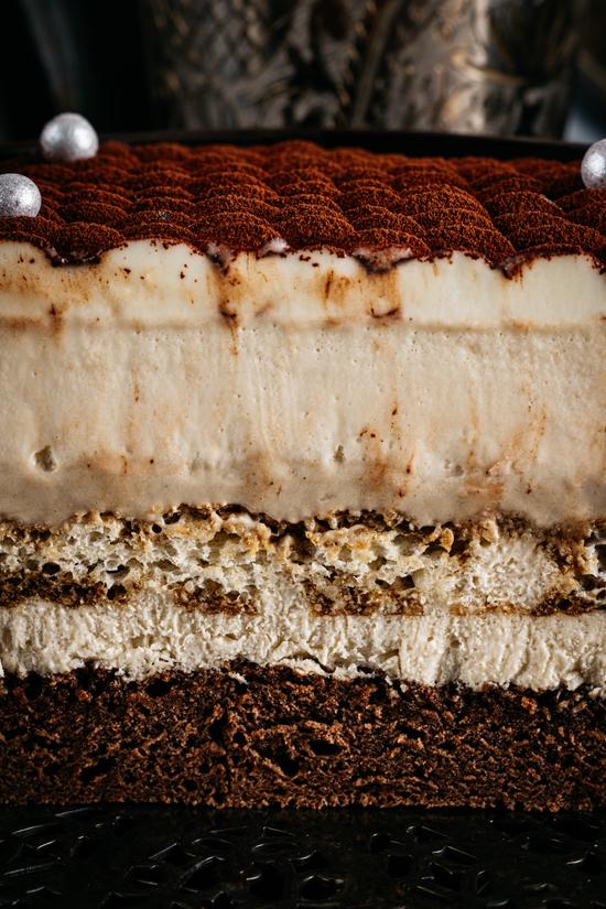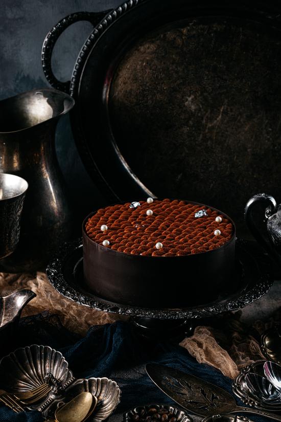 70.5% Dark Chocolate, Raw Cocoa Powder, Almond Biscuit, Italian Mascarpone Cheese, Ethiopian Arabica Coffee